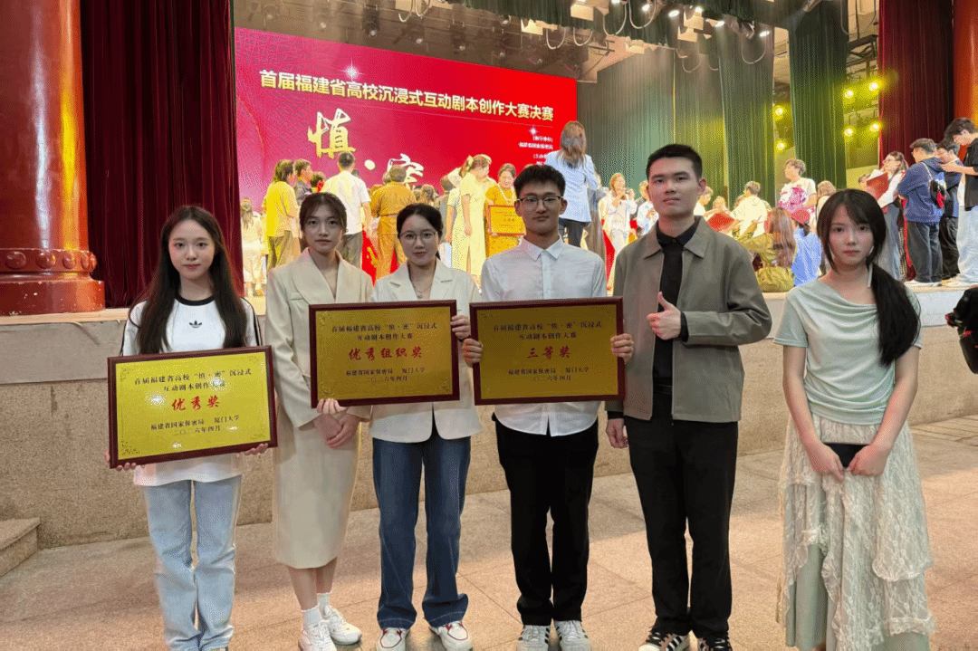 4月25日,由永利23411集团2025级思想政治教育专业苏泽钰、王心远、黄一格、温卓、张奕骏组成的yl23411永利代表队在首届福建省高校沉浸式互动剧本创作大赛决赛中荣获三等奖。