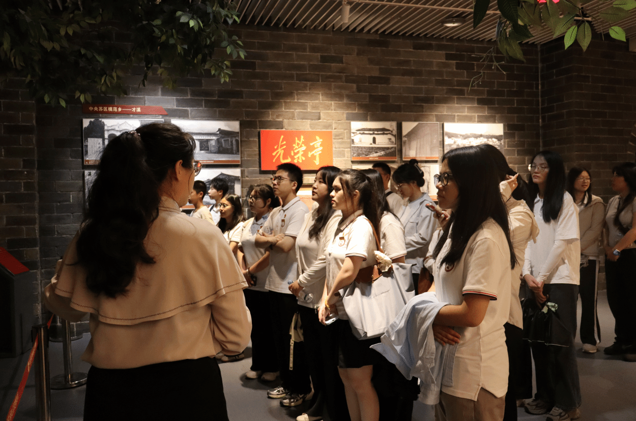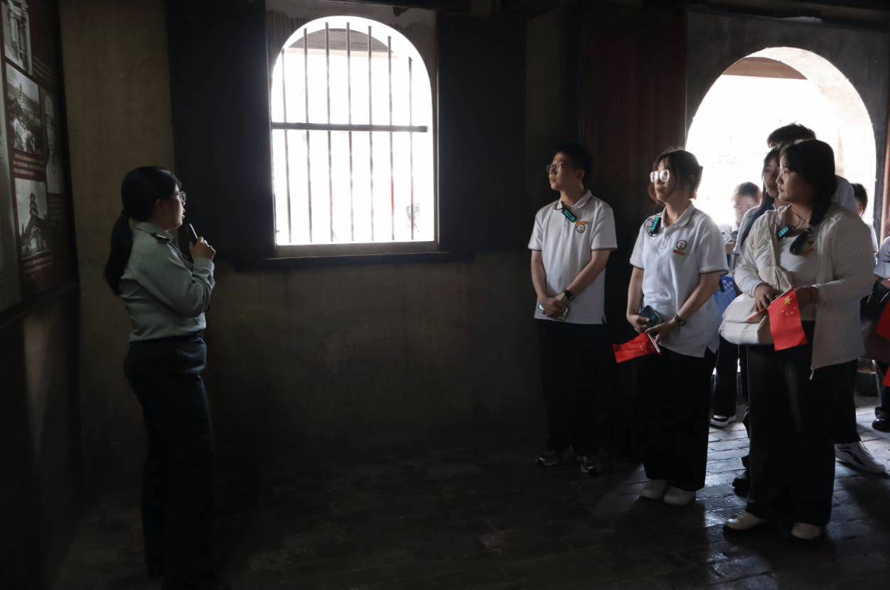 5月10日上午,研学团抵达红四军新泉整训纪念馆。在纪念馆前的大榕树广场,师生们跟随讲解员的脚步,聆听1929年红四军在此开展政治军事整训、完善 “三大纪律八项注意” 的历史背景。斑驳的砖墙、古朴的陈列物件,无声诉说着人民军队在此铸魂砺剑的峥嵘岁月。随后,师生们先后参观红四军司令部旧址、工农妇女夜校旧址,在革命先辈工作生活的场景中,感受军民同心、纪律严明的优良传统,体悟 “思想建党、政治建军” 的早期实践脉络。