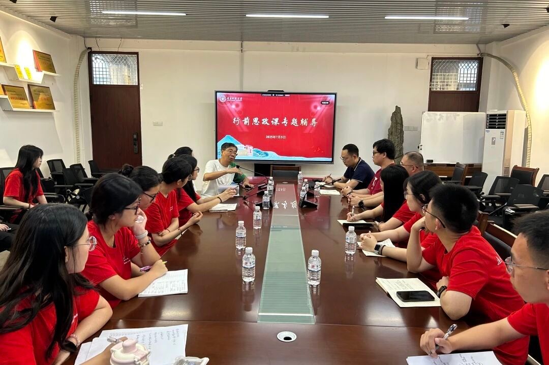 7月6日下午,社会实践活动出征仪式在综合楼中区404举行,由我院团委书记潘怀杰主持。会上,我院院长陈再生为参与实践的全体师生作行前实践活动专题辅导。他嘱咐队员们要充分做好前期准备,紧密围绕实践主题深入开展调研。在行动上不仅要注重效率,高效推进任务,还要严明纪律、服从统一指挥。同时,应积极加强跨院系、跨院校协作,真正让实践活动扎根现实、取得实效。