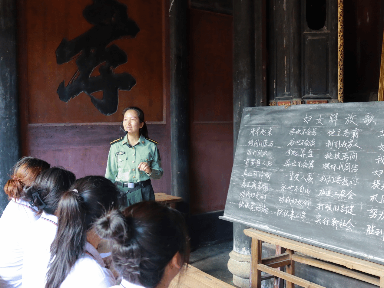 接着,在讲解员的带领下,师生们先后参观了红四军新泉整训纪念馆、红四军司令部旧址、新泉工农妇女夜校旧址等。这里是人民军队“三大纪律八项注意”的初步完善地,也是铸就军魂的战略要地。新泉整训开创了我党我军历史上政治军事整训制度化、规范化建设的先河,为古田会议的胜利召开奠定了坚实基础。