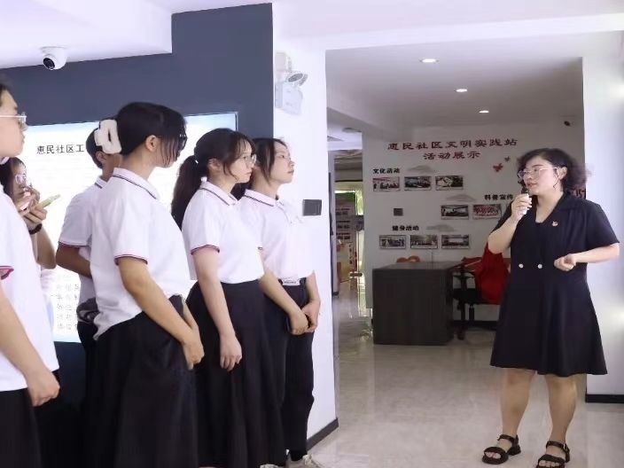 “同讲一堂思政课”暑期社会实践团提前对惠民社区进行踩点,浏览社区相关纸质材料,结合习近平总书记关于基层治理的重要论述开展理论分析。接着,在惠民社区工作人员林燕婷的带领下对该社区治理和机构建设进行深度考察。通过理论联系实际,实践团成员就社区治理路径有了新的思考,为实现“思政小课堂”与“社会大课堂”的贯通发展打下坚实基础。实践团成员谢小丽同学谈到:“基层治理关乎百姓的幸福生活,党建引领下的多元共治、邻里互助,不仅将总书记关于基层治理的重要指示批示落到实处,也是实现社区和谐发展的关键。”