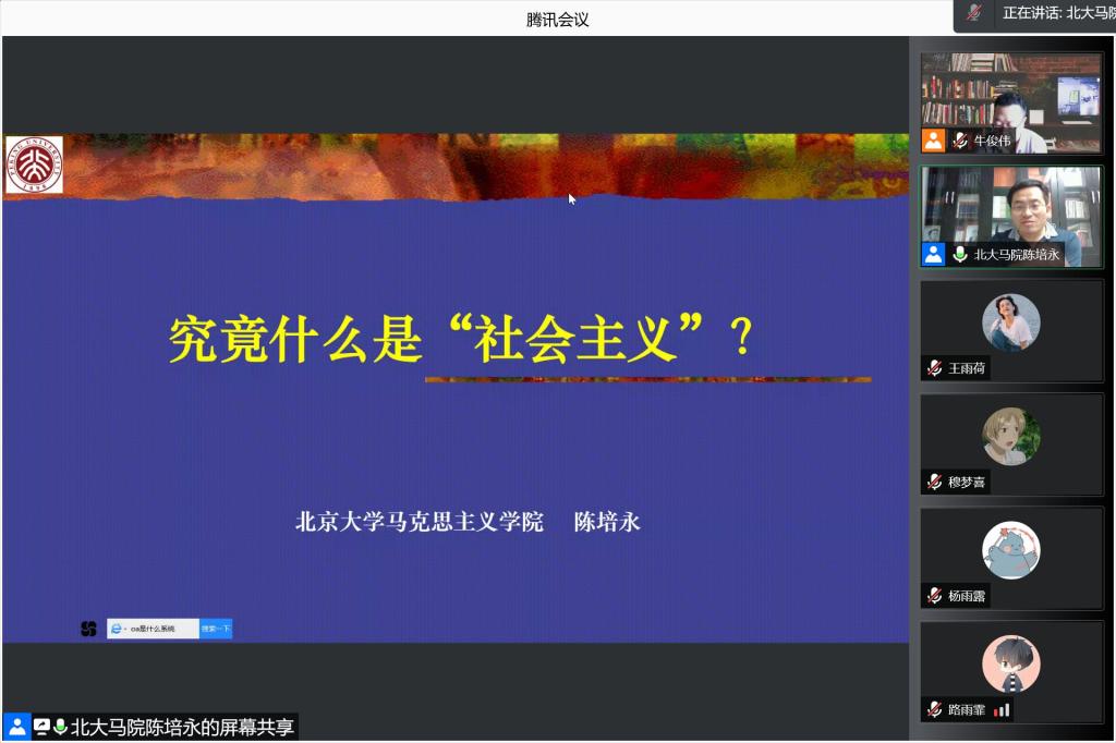 9月30日下午15时,北京大学永利23411集团副院长、研究员、博士生导师陈培永老师应邀为我院全体硕士研究生及部分教师作了题为《究竟什么是“社会主义”?》的专题讲座。本次讲座以腾讯会议形式在线直播,永利23411集团副教授牛俊伟老师全程主持。