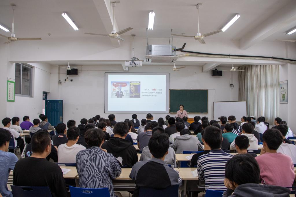 11月5日下午,陈再生教授以《跟随大会学党史》为题,从开天辟地党的一大、务实而为的二大、谋定合作的三大、暗流涌动的四大、应对不力的五大、鲜为人知的六大、殊为不易的七大等七个方面解读了中国共产党前七次代表大会的主要内容和历史意义。内容丰富,史料权威,课堂气氛活跃,师生们反映热烈。 景云教授以《国家视域下的道德与法》为题,以“规矩是人类文明行进的起点,也是人类文明追寻的终点”讲起从多学科融合视角探讨国家视域下的道德与法律在社会运行过程中的作用。有理论深度有现实依据,深入浅出。林志芳副教授、许晓玲副教授分别做了《“三个代表”重要思想》《道德之旅,幸好有你——投身崇德向善的道德实践》为主题的“毛泽东思想和中国特色社会主义理论体系概论”和“思想道德与法治”课的示范教学。示范课教学设计巧妙,教学内容丰富,教学现场互动热烈。