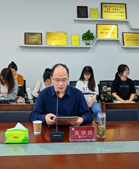 4月27日上午,宁德师范学院永利23411集团院长游国斌教授应邀于综合楼中区404为我院2023级硕士研究生作题为《以伟大建党精神引领中国式现代化道路》的专题讲座。本次讲座由我院思想政治教育专业学位点负责人吴学兵教授主持。