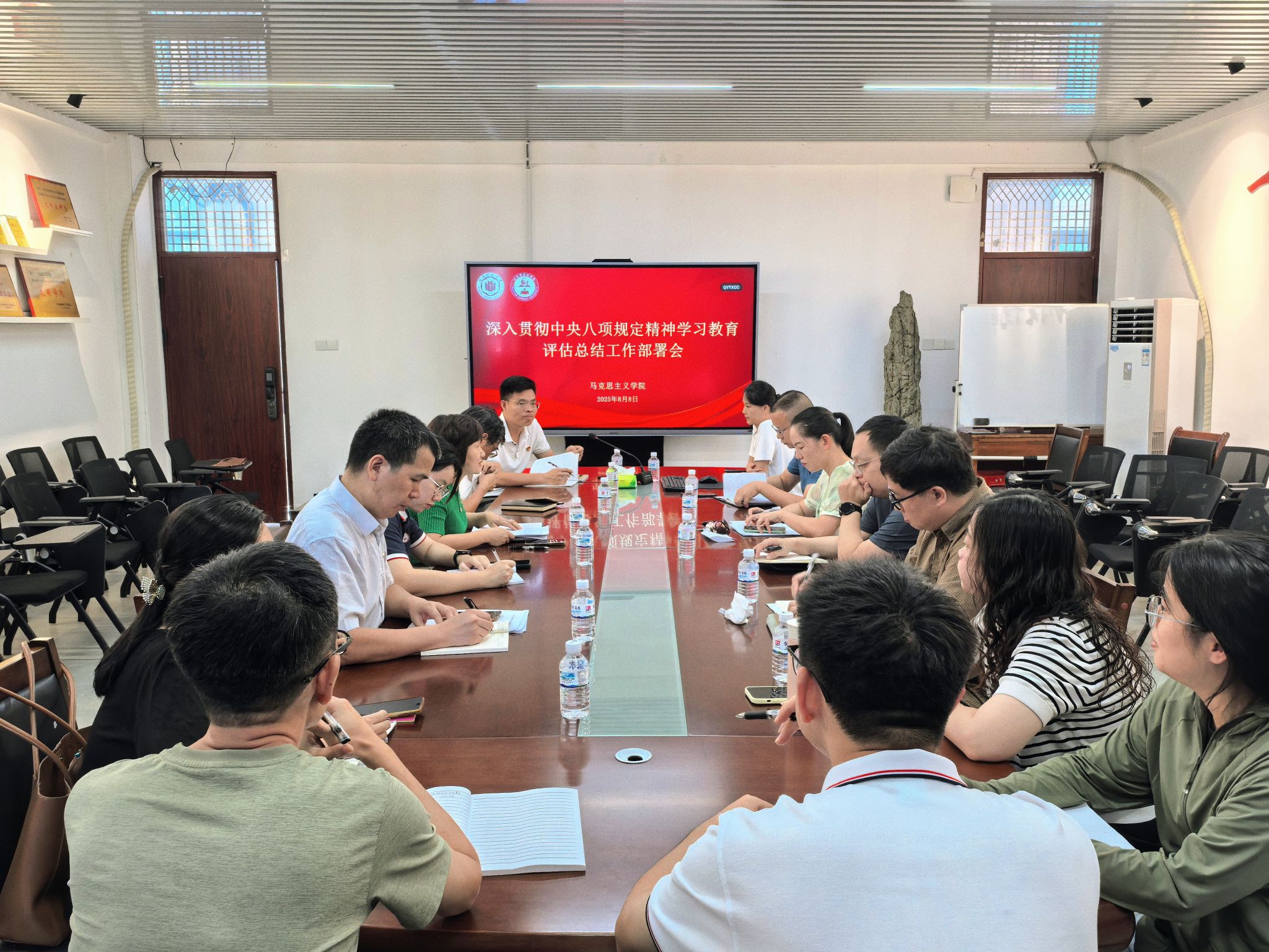 8月8日,我院召开深入贯彻中央八项规定精神学习教育评估总结工作部署会议。全体班子成员、科级干部、党支部书记以及学生党员代表参加会议,会议由党委书记方琼主持。