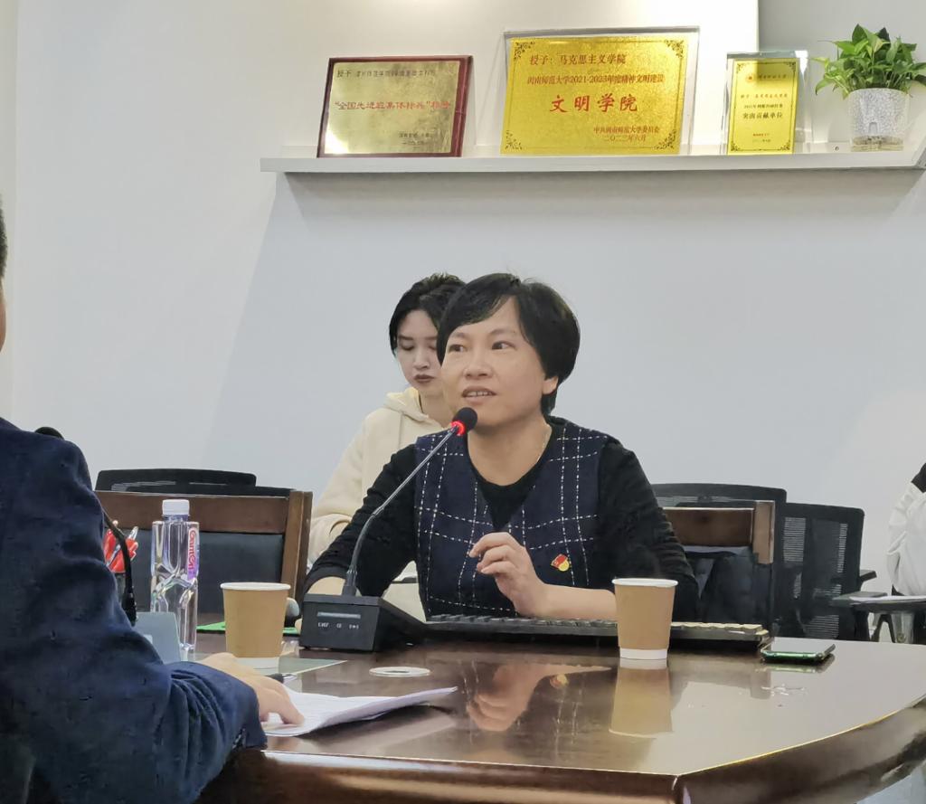 徐志红老师围绕如何做好党支部的标准化和规范化建设,从党支部的功能定位、党支部的工作职责、党支部的设置、党支部的设立、调整和撤销程序、党支部的任期与换届、党支部的组织生活及组织领导等八个方面展开详细的讲解。她首先结合当前学院永利集团中存在的问题和不足,针对性地提出了规范开展“三会一课”、主题党日活动、理论学习等方面的具体措施。紧接着,她通过展示图表等简要直观的方式讲解了党支部工作机制规范、组织生活规范、工作职责规范等相关工作要求。最后,她指出党支部标准化、规范化建设是发挥基层党组织战斗堡垒作用的基石,作为基层党务工作者应牢记推进党支部标准化建设的工作职责,发挥好党务工作者的先锋模范作用,把党支部的标准化、规范化建设落实到实际行动中去。