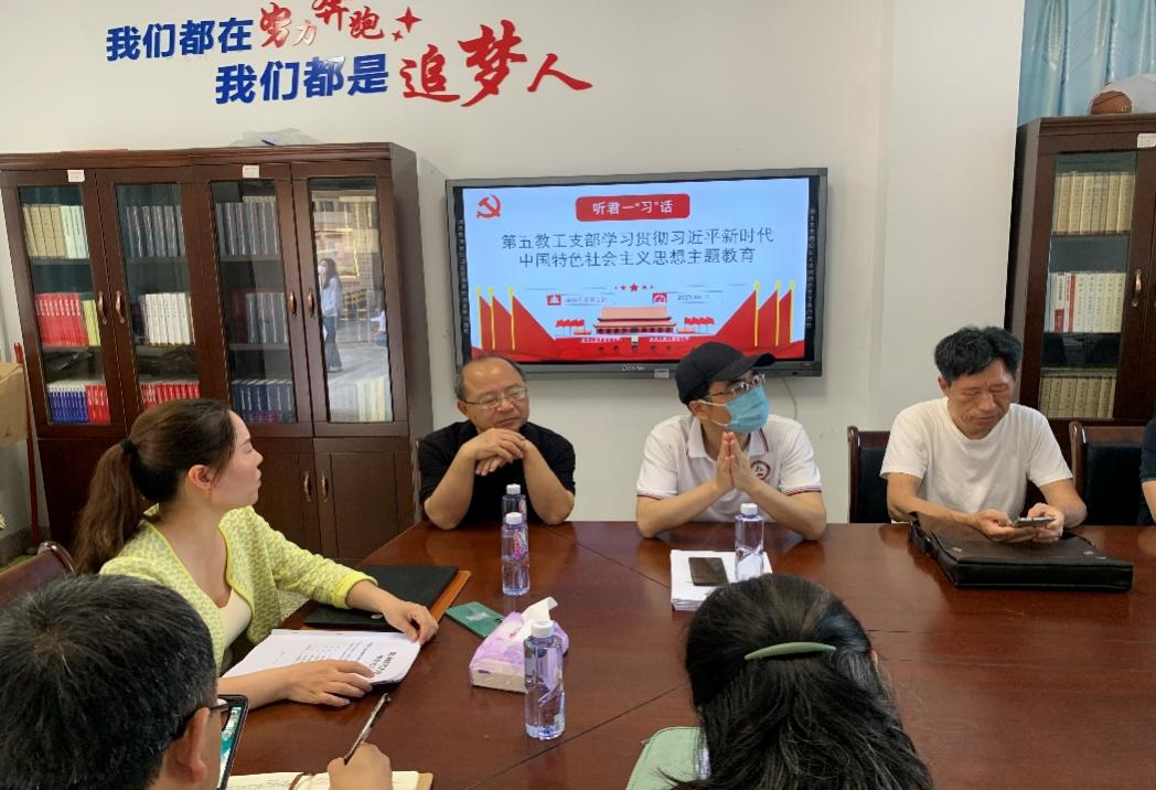 理论学习+业务交流的学习模式是教工第五党支部在理论学习上的一种探索,通过把理论学习、调查研究、人才培养、教学改革有效结合起来,一体推进,真正把马克思主义看家本领学到手,自觉用习近平新时代中国特色社会主义思想指导教学科研工作。(文图:郑育琛)