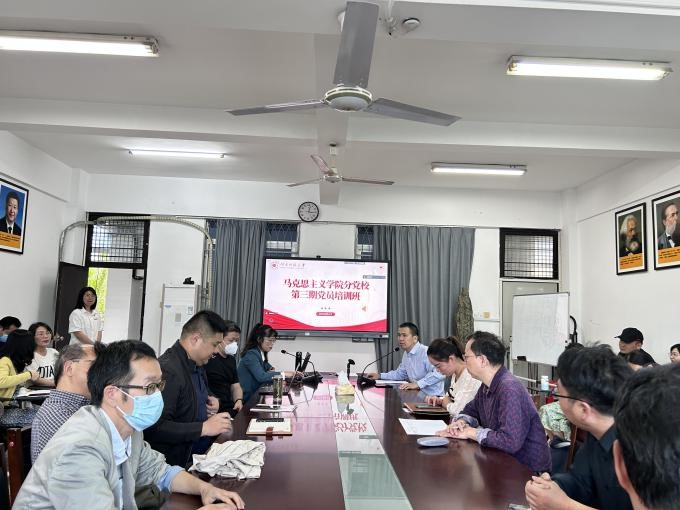 为深入学习贯彻党的二十大精神,加强师生党员教育,进一步提升党员的党性修养,5月11日下午,永利23411集团分党校第三期党员培训班顺利开班,本次党员培训班采取线上线下相结合的方式举行。开班式由党委组织员陈精焕老师主持。