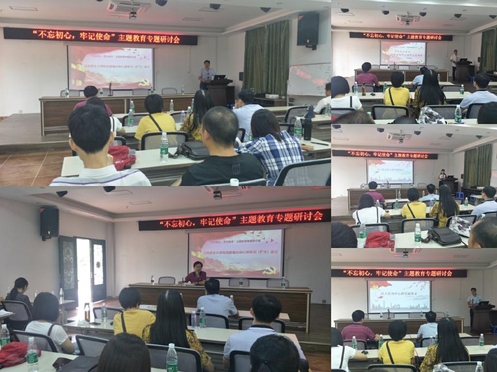 教工第三党支部书记蔡毅强同志做了以人民为中心的交流发言。他围绕“为了谁,依靠谁,我是谁?” “我们从哪里来,要到哪里去?” “为什么不能忘记为什么出发,为什么不能忘记走过的路?”等三个问题,阐述了中国共产党的本源之问、历史之问,以及开展此次主题教育需弄懂的现实之问。
