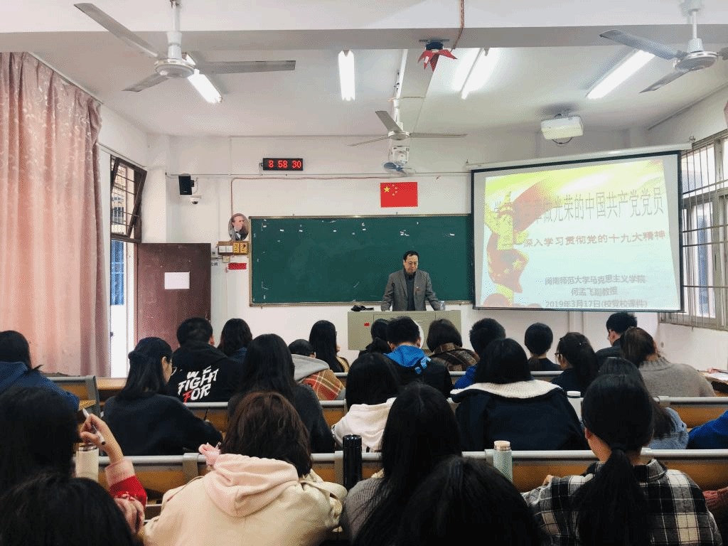 3月17日上午,何孟飞老师于综南202开讲了本次培训的第三次课。何孟飞老师讲解了新党章的内容以及内涵,我院学员深入学习了作为一名光荣的共产党员的责任与担当,与时俱进,心跟党走,为中华民族的伟大复兴不断奋斗。