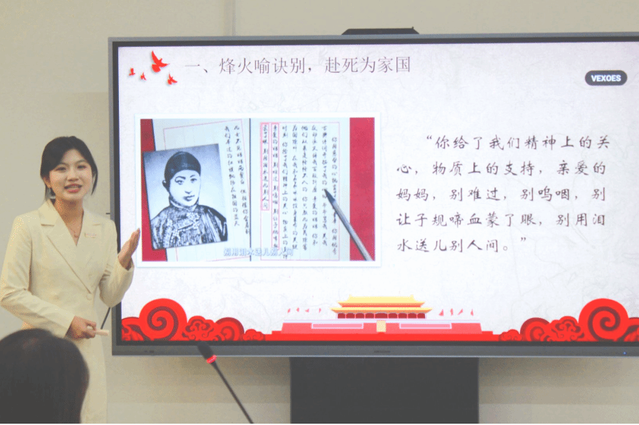 入围本次决赛的12组选手,围绕"忆红色峥嵘路,践青春奋进歌"这一主题,立足新时代青年学子的视角,紧扣中国人民抗日战争胜利80周年、抗美援朝战争胜利75周年等重大历史纪念节点,创新开展思政教学展示。选手们以扎实的知识功底解读红色基因传承,将革命文物、战地家书等具象化素材转化为育人资源,借助多媒体动态课件与沉浸式课堂设计,立体化诠释英雄人物的使命担当,展现红色精神的时代回响。这场兼具思想深度与情感温度的教学展示,构建起贯通历史与现实、理论与实践的青年思政教育新范式,为现场师生呈现了一堂有深度、有温度的思政大课。