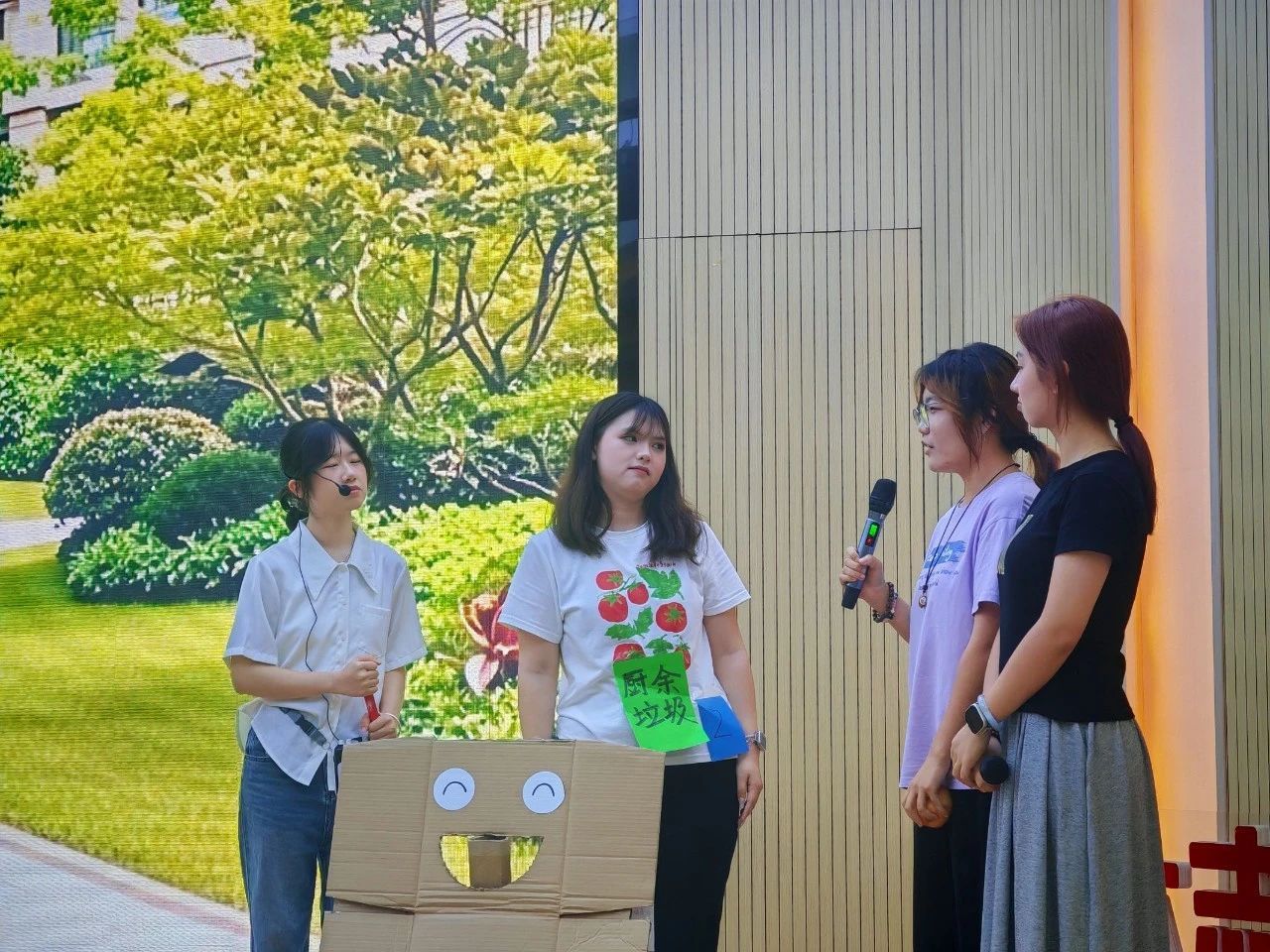 不知道对不队由达理2A402宿舍和达理2A403宿舍共同组成,她们带来的情景剧《生态新章:白雪公主的绿色征程》讲述了一个充满童话色彩的环保故事,选手们通过生动的表演呼吁大家共同守护绿水青山,传达出绿色主题。