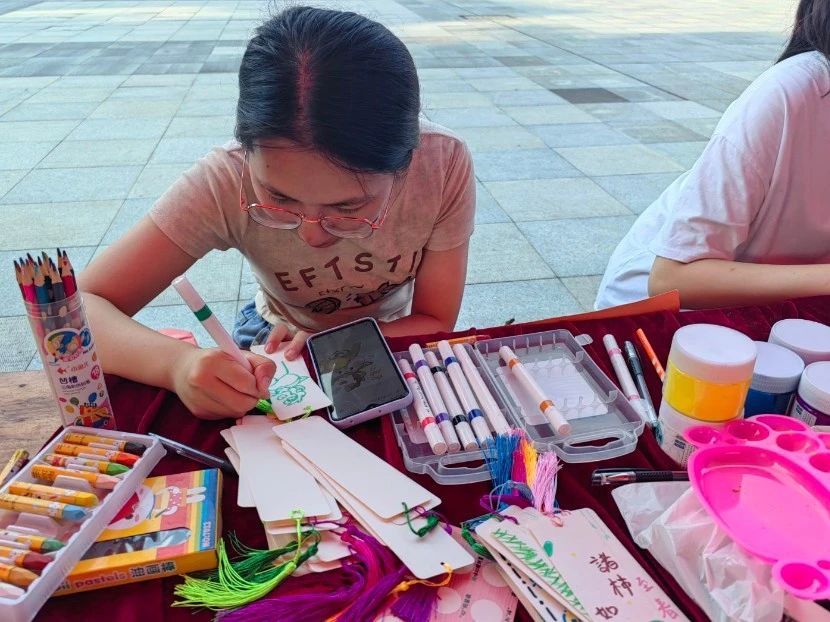 5月15日,我院自律委员会心理协会在yl23411永利弦歌广场上举行“心灵书签”活动。心协成员引导参与者在摊点自由选择材料,围绕梦想、感悟、激励话语等主题,进行书签创作。此次活动为学生提供了情感表达的出口,有助于学生释放内心压力,缓解焦虑情绪,提高心理健康意识和自我调适能力。