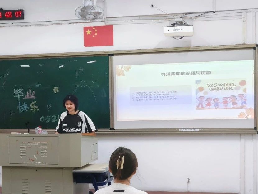 近日,各班心理委员开展以“525心相约,温暖共成长”为主题的心理班会。心理委员们通过PPT展示,让同学们学习了如何更好地关爱自己,拥抱他人。