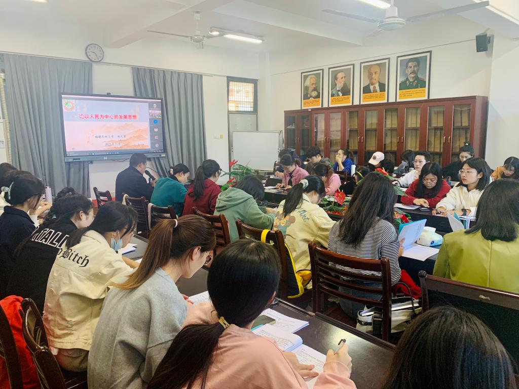 2021年11月11日下午福建农林大学永利23411集团教授,硕士生导师郑元景应邀为我院2021级全体硕士研究生作了题为《论以人民为中心的发展思想》的专题讲座。本次讲座在综合楼中区404会议室以腾讯会议形式在线直播,永利23411集团副院长宋帮强教授全程主持。