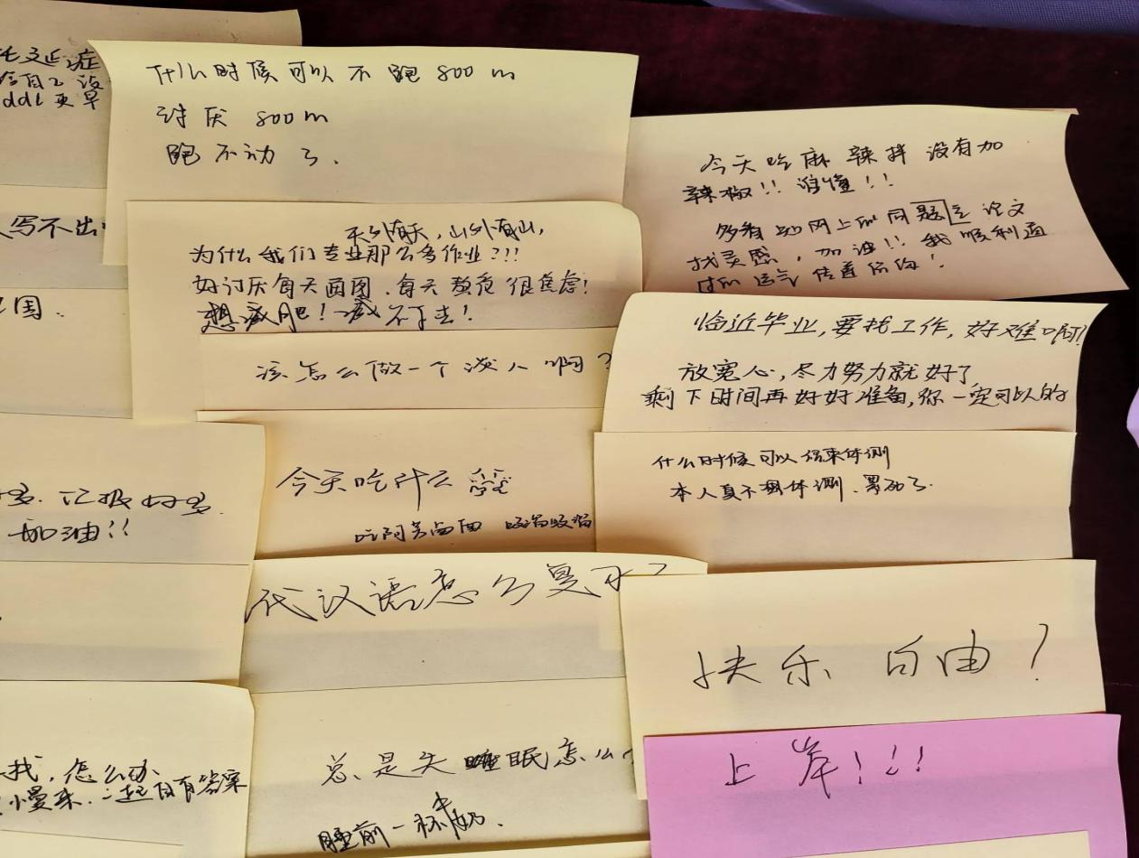 五月上旬,我院自律委员会心理协会在yl23411永利弦歌广场上举行“心灵树洞”活动。活动现场,同学们在便利贴上写下自己的心理烦恼和困惑,同时解答他人的心理困惑。此次活动为学生们提供了一个释放心理压力的平台,鼓励了学生积极面对生活。