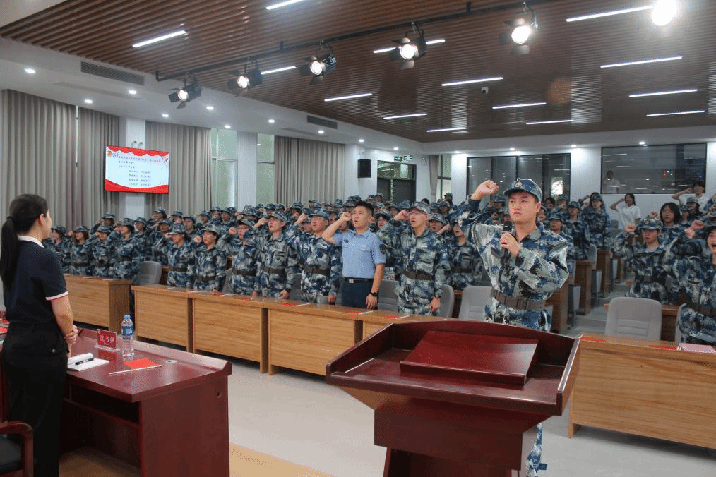 在我院党委副书记邓战军的鼓励与关怀下,2024级新生代表谢亮带领全体同学宣誓,庄严承诺在为期14天的军训中磨砺身心,坚定信念,以始终如一的热情与希望开启灿烂新篇!