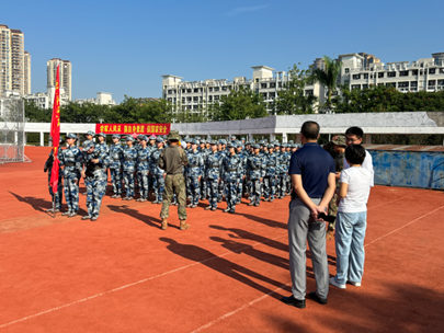 烈日当空,昂首挺胸,目视前方,一颗颗高昂的头颅,一张张自信的脸庞,充分展现了同学们的自信与坚韧。