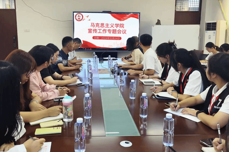 10月24日下午,我院于综合楼中区404会议室召开宣传工作专题会议。会议由党委副书记邓战军主持,各科室负责人及学生宣传骨干、通讯员参加。(通讯员 张欣蓓)