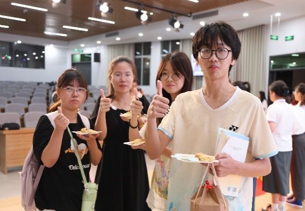 在闽台古早美食品鉴会环节,“味有‘岸芗’来”国家级大学生创新创业训练计划团队通过VCR等分享了他们精选台湾凤梨酥、漳州豆脯饼等闽台特色美食,结合漳州市非物质文化遗产“芗剧(歌仔戏)”和“北岸篮”元素进行特色包装等创新创业的经历故事,来自生物师范、食品营养专业的同学们发挥他们的专业优势也给予了大创团队专业性的意见和建议。