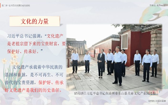 马克思主义基本原理教研室陈源充博士讲授了题为《文化的力量》的思政课,他深入解读了习近平总书记关于城市文脉的重要讲话精神,并从理论高度深刻阐述了闽南文化不仅是两岸同胞共同的文化财富,而且在加深两岸人民情感联系、唤起共同的历史文化记忆方面,发挥着不可替代的作用。