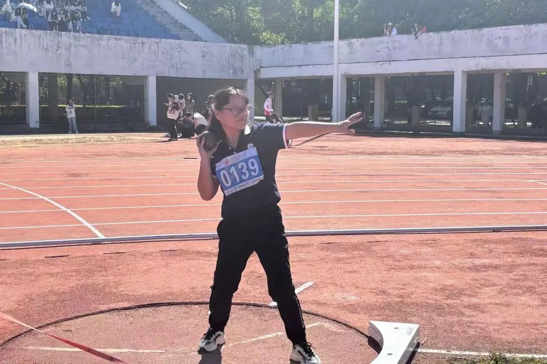 我院沈书伊老师在青年丙组女子铅球决赛中获得第一名