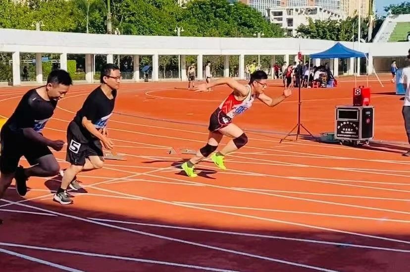 我院蔡毅强老师在中年丙组男子100米决赛中获得第一名