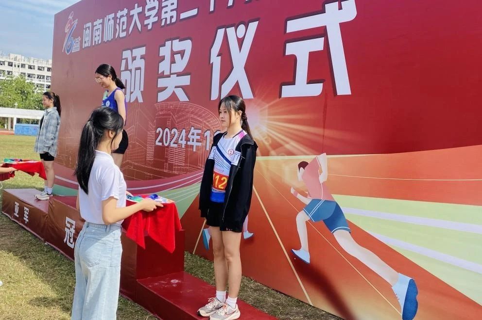我院2022级二班傅婵娟在女子甲组800米决赛中获得第三名