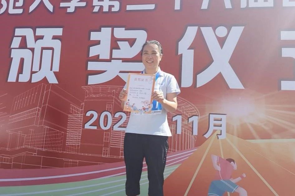我院蓝小燕老师在老年丙组女子跳远决赛中获得第一名