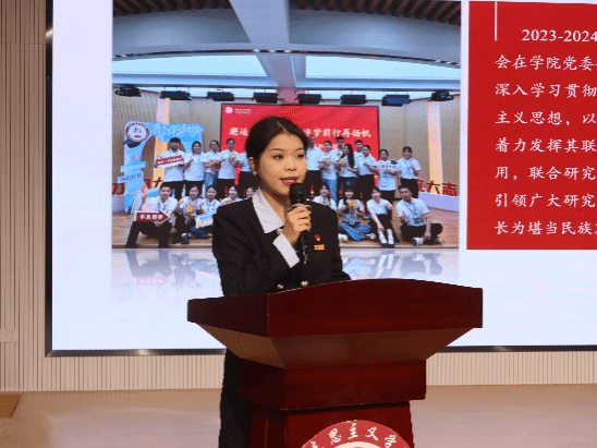 随后,我院研究生会、自律委员会、青年宣传中心、青年志愿者中心、团委、学生会、资助中心以及党建中心的学生代表依次上台述职。八位组织负责人各自的学生组织2024年的工作进行总结回顾。他们紧密结合各自工作实际情况,从理论学习、组织建设、工作成效、未来规划等多个方面,进行了全面而详细的阐述。在述职过程中,各组织负责人还对目前存在的一些不足进行详细地分析,力求从不足之处得到有效的启发,为今后工作的开展打下坚实的基础。同时,各组织负责人在提高组织工作效率、加强组织作风建设、提升组织服务能力等方面的推进提出了切实可行的规划,为学生组织工作的顺利开展提供强有力的支持,进一步推动学院发展迈上新台阶。