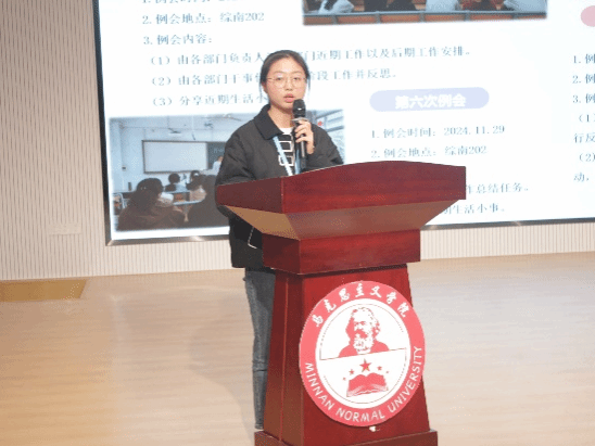 为加强学生干部队伍建设,进一步强化学生干部的自我管理、自我教育以及自我服务意识,12月20日晚,我院于东门马院礼堂举行2024年学生组织述职报告会。院党委副书记邓战军、团委副书记潘怀杰、辅导员任程龙、沈书伊及我院学生组织全体学生参加。