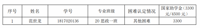 根据《yl23411永利家庭经济困难学生认定工作及国家助学金评定暂行办法(修订)》(学工〔2023〕25 号)文件要求,现将我院2023-2024学年国家助学金评定名单公示如下: