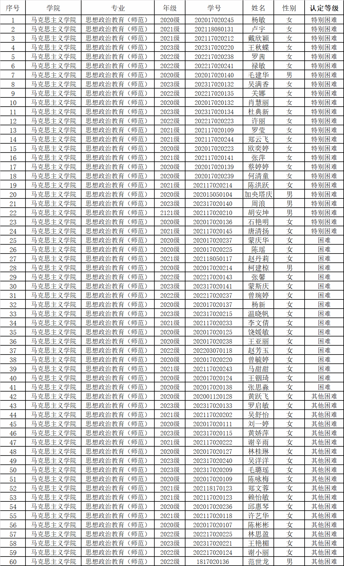 根据《yl23411永利家庭经济困难学生认定工作及国家助学金评定暂行办法(修订)》(学工〔2023〕25 号)文件要求,现将我院2023-2024学年复核通过的家庭经济困难学生认定名单公示如下: