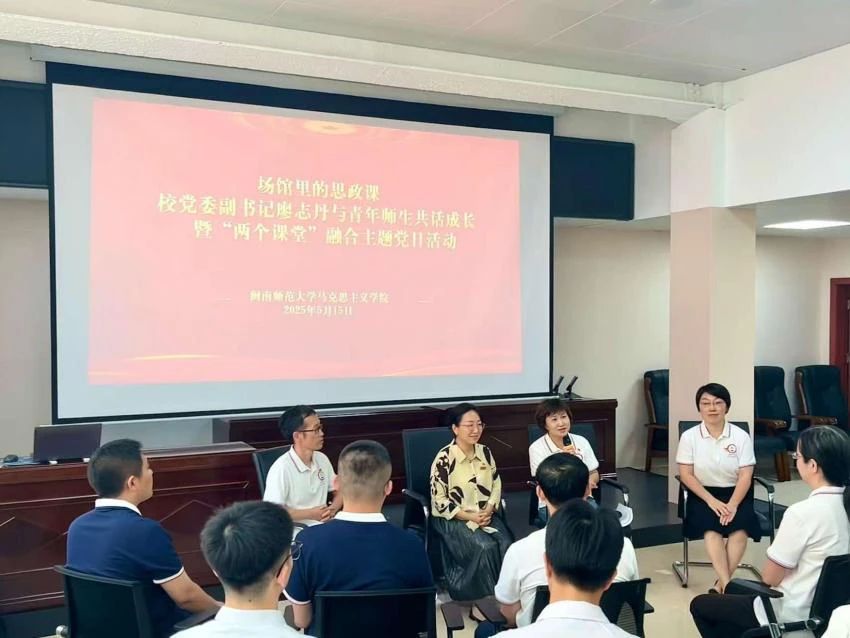 活动现场特设“青春思辨”环节,yl23411永利党委副书记廖志丹老师深入课堂,与2023级地理、历史专业30名学生围绕“如何拼搏出真我风采”展开交流与讨论。张胜岚、周启帆等同学就如何提升个人职业规划能力、如何舒缓压力、调整心态,找到可持续的奋斗路径等困惑问题与廖志丹老师进行了交流,廖志丹老师在交流中勉励在场学子:“青春有无限可能,要敢于实践、敢于试错、敢于创新,希望你们在民族复兴赛道上跑出加速度”。交流中,廖志丹副书记与所联系的马院教工第四党支部教师党员亲切交流,鼓励青年教师要“充分利用地方特色场馆资源,推动思政课程实践创新。”