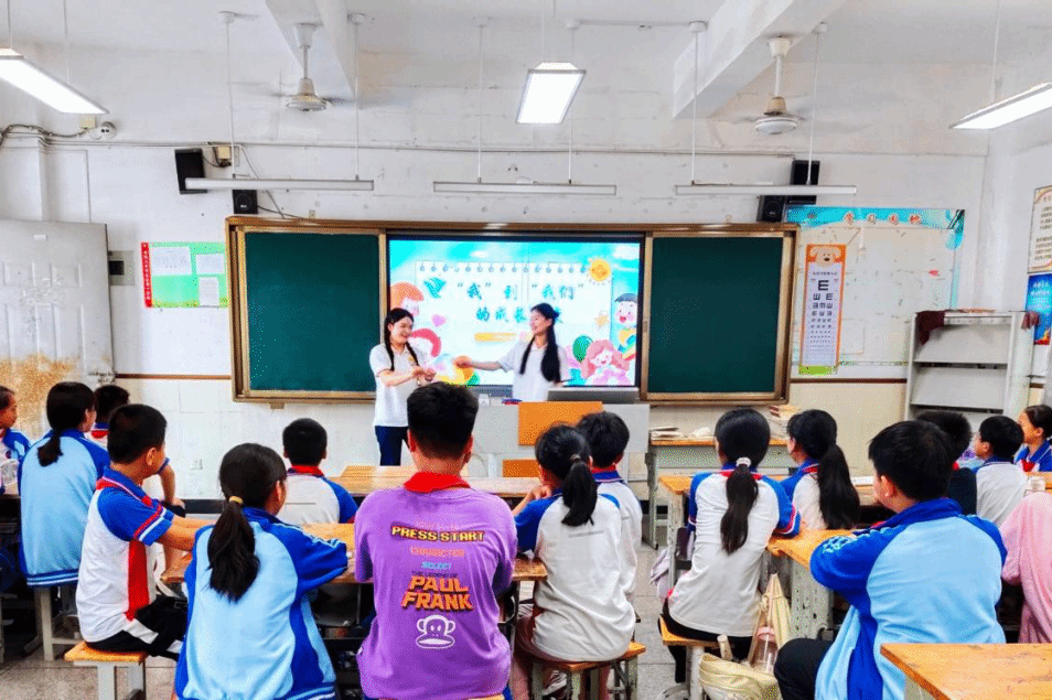 六年级团辅活动由我院24级学科教学(思政)研究生黄诗琴主讲,24级研究生林孟、许玮琳协助,以“少年有梦,行必往之”为主题。活动伊始,“绘制少年梦想”环节让同学们在纸上书写自己的梦想,“宣告少年梦想”环节,同学们怀揣着对未来的憧憬走上讲台分享自己的梦想。“张贴少年梦想”环节,同学们分组用梦想装饰卡片,让色彩斑斓的拼贴画承载同学们纯真的憧憬。“梦想照相馆”通过展示AI生成的职业照,与梦想中的自己合影激发了学生对未来的向往。“昔日少年梦想”环节借助纸条图片与视频,使抗战英雄“世界和平”的梦想与今日繁华的联动起来,让学生感悟梦想的传承。最后,“今日中国梦有我”环节使学生认识到中国梦并非遥不可及的宏大愿景,而是由无数个像自己这样的个人梦想汇聚而成。只有当个人梦与中国梦同频共振,才能汇聚起推动国家发展、民族进步的磅礴力量。