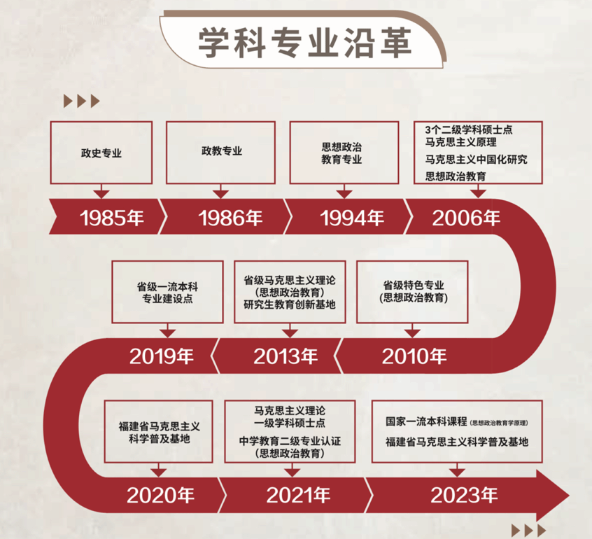 2018年被确定为中共福建省委教育工委重点永利23411集团,2022年在福建省高校重点永利23411集团考评中获优秀等次。2020年、2023年两度获批福建省马克思主义科学普及基地。学院主要承担全校思政课教学工作,以及思想政治教育本科生、马克思主义理论学科硕士生的培养及学科建设任务。2021年获批马克思主义理论一级学科硕士点,现设有马克思主义基本原理、马克思主义中国化研究、思想政治教育、中国近现代史基本问题研究、学科教育(思政)等二级硕士学位授权点,下设谷文昌先进典型研究中心等研究机构。