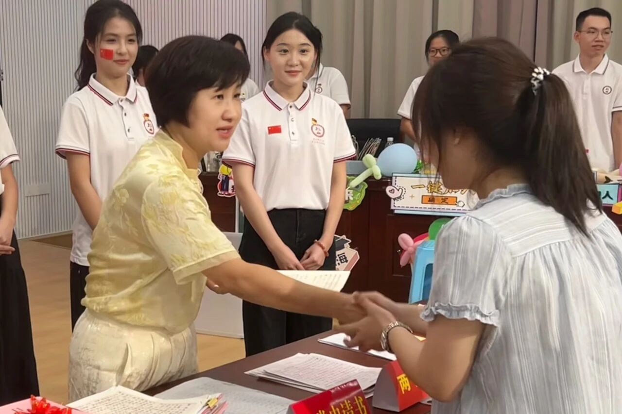 今年迎新最具特色的环节是“两书同交”——新生同步递交入团申请书与入党申请书,彰显我院学子向党靠拢、追求进步的初心。校党委副书记廖志丹、副校长林耀进等校院领导亲临现场,为新生赠送校长推荐书目并合影留念。廖志丹副书记勉励新生:“希望同学们在马院夯实理论根基,做马克思主义的坚定信仰者和实践者。”赠送的书籍包括《习近平在福建》《AI未来进行时》等校长推荐书单中的经典书目。不少新生现场翻阅并表示:“这份礼物意义非凡,是我们大学时代的‘思想导航仪’。”