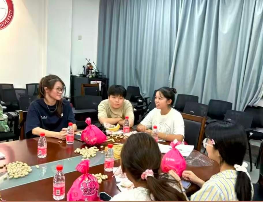 为了解我院少数民族学生在校的学习、生活适应情况,在国庆与中秋“华诞月圆”的美好时节来临之际,我院于9月29日晚在综合楼中区404举行以“共庆双节,同绘民族团结画卷”为题的少数民族座谈交流会。院党委副书记邓战军,辅导员沈书伊和2025级少数民族学生一起座谈交流。