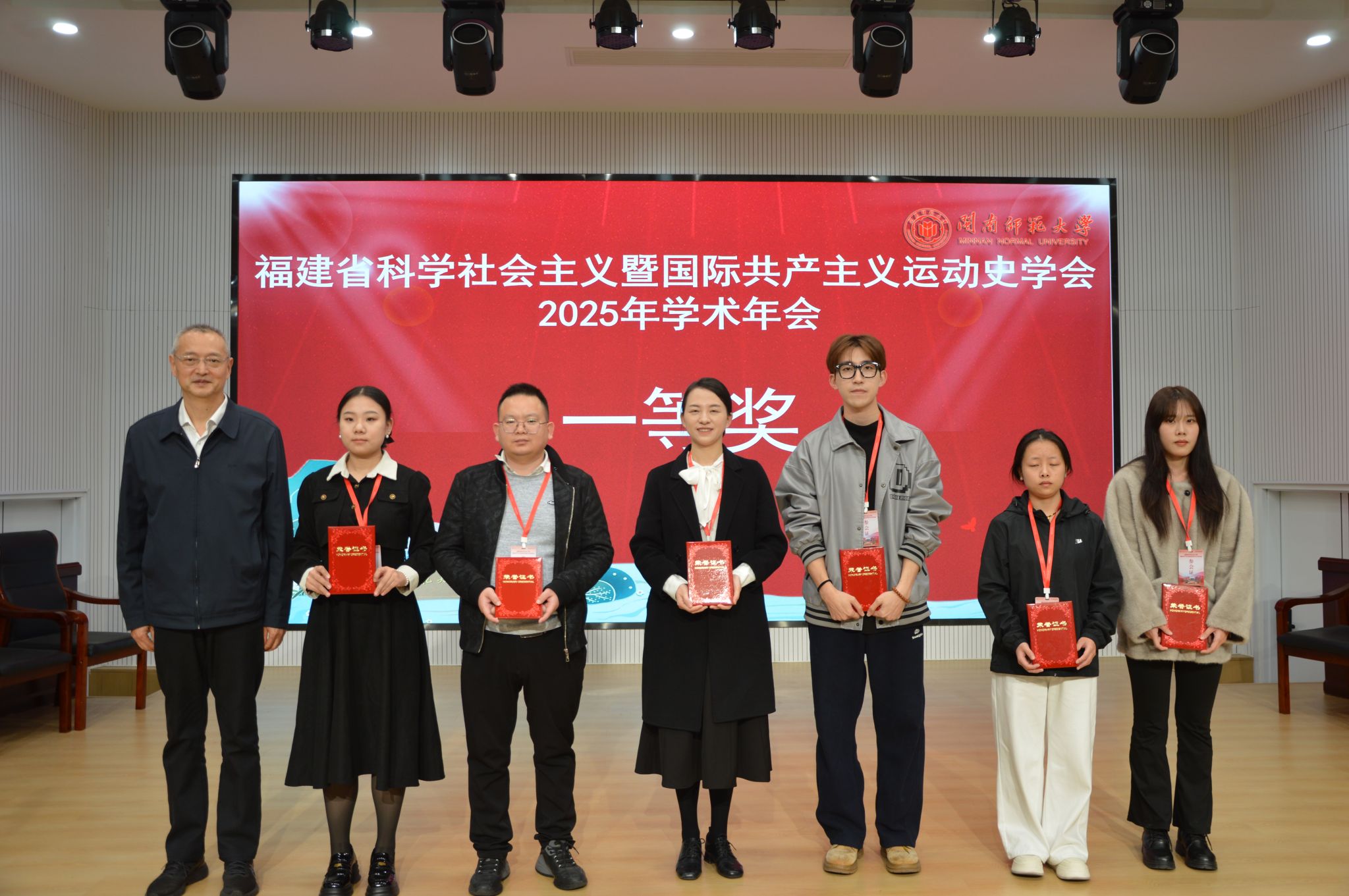 会议小结由学会副秘书长、宁德师范学院郑常鳜副教授主持。本次论坛共收到142篇论文,经专家评审,共选出一等奖8名,二等奖12名,三等奖20名,优秀奖44名。学会副会长连朝毅宣布获奖论文名单,省学会会长夏良玉、永利23411集团党委书记方琼、宁德师范学院永利23411集团党委书记廖翔华分别为获奖作者颁奖。