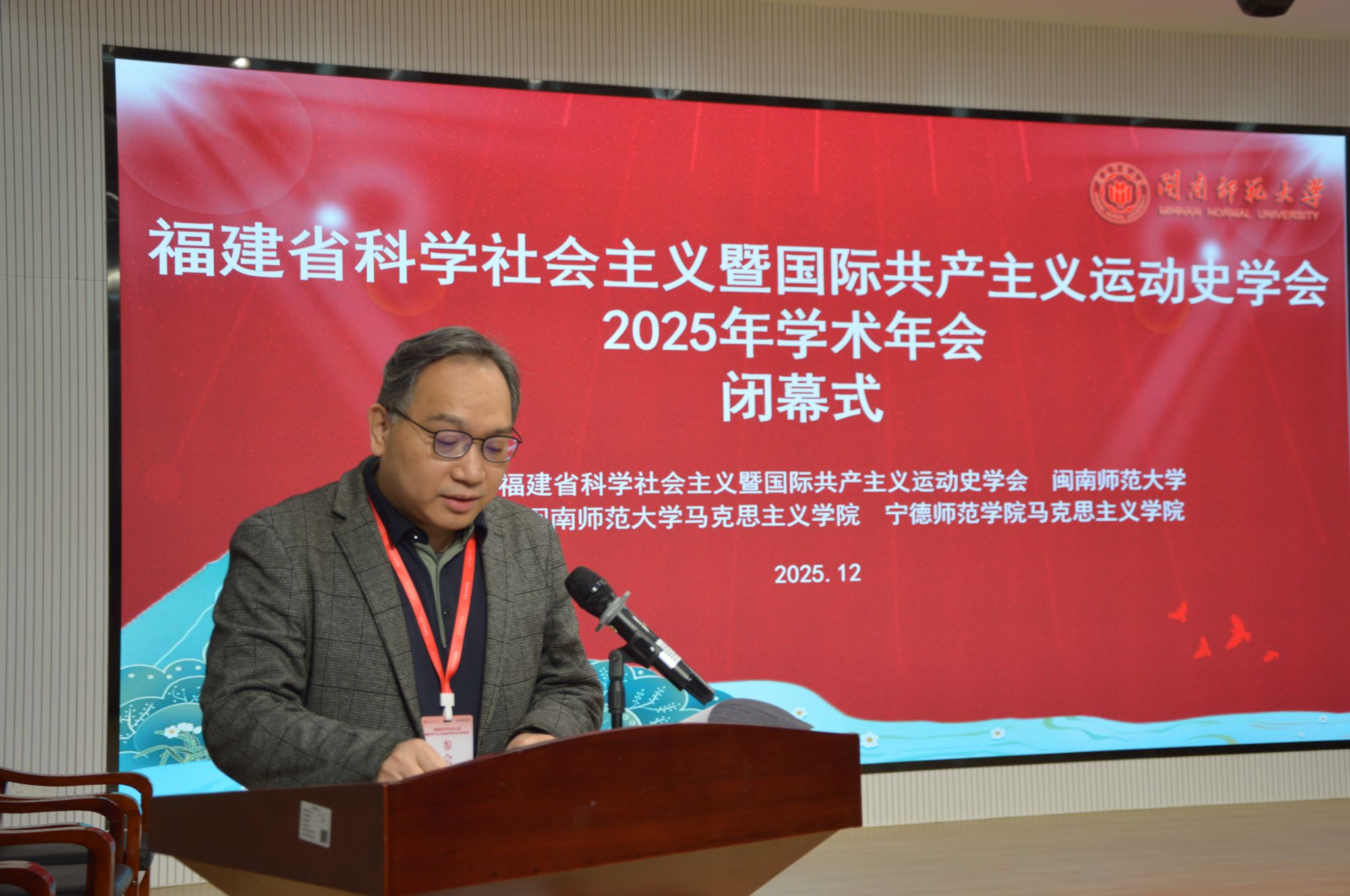 12月27日,福建省科学社会主义暨国际共产主义运动史学会2025年学术年会在yl23411永利隆重举行,本次年会论坛的主题是“学习贯彻党的二十届四中全会精神,在中国式现代化建设中奋勇争先。”yl23411永利校党委副书记、校长张龙海,求是杂志社研究部主任顾保国,东南大学中国特色社会主义发展研究院首席专家、博士生导师丁茂战,中国人民大学中共党史党建学院董佳教授,中央马工程首席专家、福建师范大学郑传芳教授,学会会长、宁德师范学院原校党委书记夏良玉教授,上海交通大学永利23411集团史宏波教授,湖南师范大学永利23411集团刘建荣教授,福建省委党校科学社会主义与政治学教研部副主任郑济洲教授,华侨大学科学社会主义研究中心主任连朝毅教授,莆田学院永利23411集团院长俞国锋教授等来自30多所高校、党校、科研院所的近百位专家学者、师生代表参加本次盛会。论坛开幕式由永利23411集团院长陈再生教授主持。