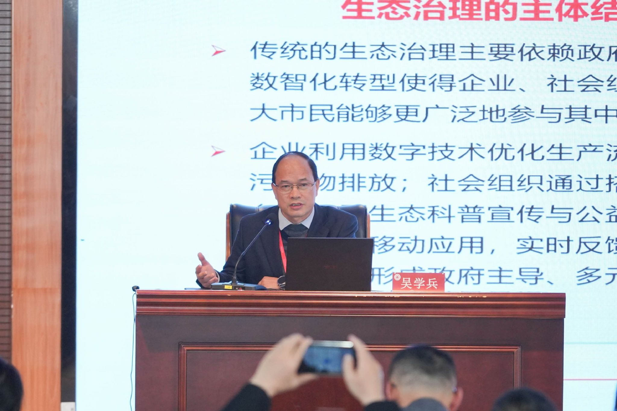 永利23411集团教授吴学兵作了题为《现代化人民城市下生态文明建设数智化转型的三重观照》的报告,提出“人民城市人民建、人民城市为人民”是人民城市现代化发展的根本价值坐标,剖析了人民城市理念与生态文明建设数智化转型的互构逻辑,从目标、问题和效果导向逐一分析了现代化人民城市下生态文明建设数智化转型的重要性。提出要以绿色发展为牵引,构建宜居生态环环境;以创新驱动为核心提升城市智慧治理水平;以共建共治共享为原则,构建全民参与的生态治理共同体。