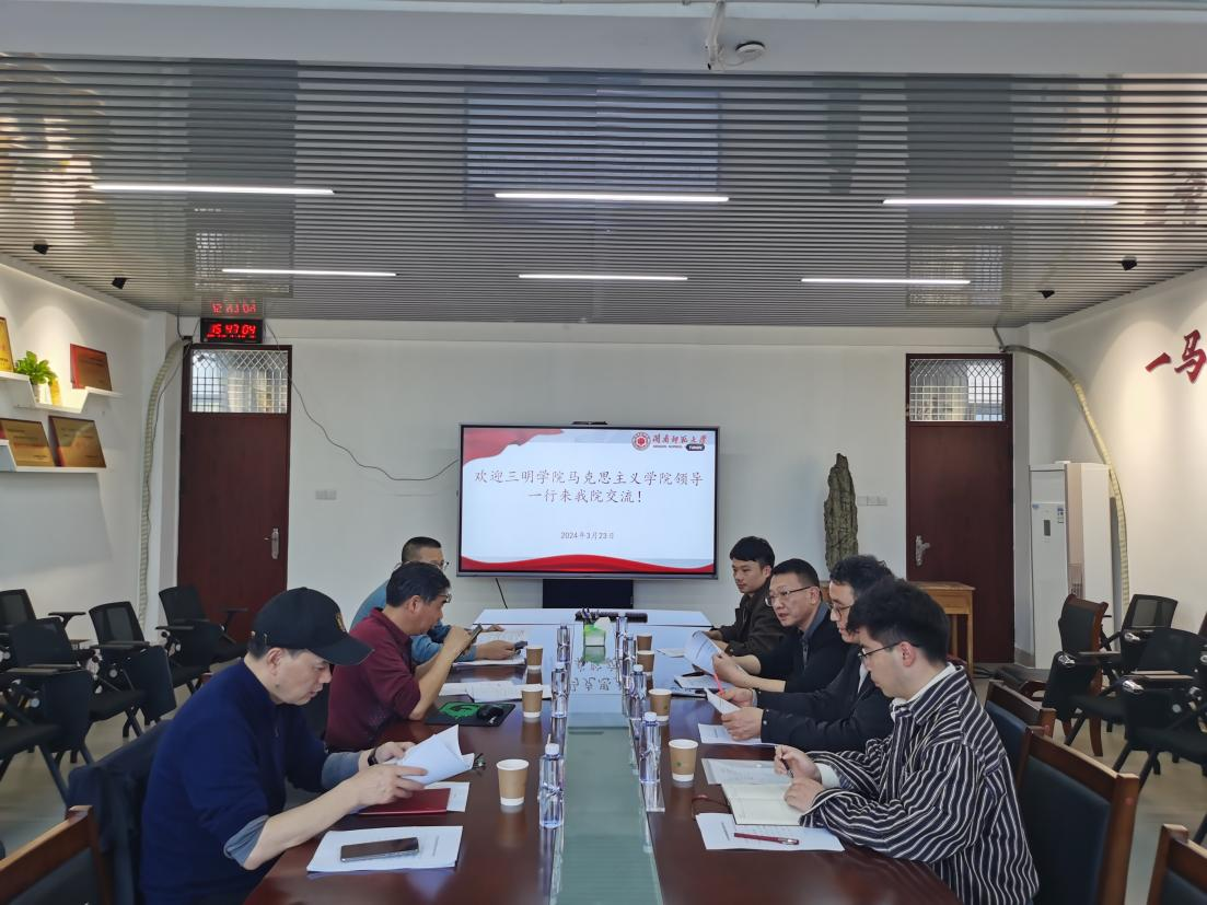 3月23日下午,三明学院永利23411集团院长邹晓芟一行来我院交流。我院院长陈再生教授、学院党委副书记邓战军、思想政治教育专业学位点负责人吴学兵教授在综合楼中区404与来宾进行洽谈交流。