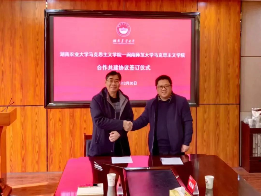 12月30日上午,我院党委书记方琼,院长陈再生一行赴湖南农业大学永利23411集团签署共建“大思政课”合作协议。(通讯员 钟琪)