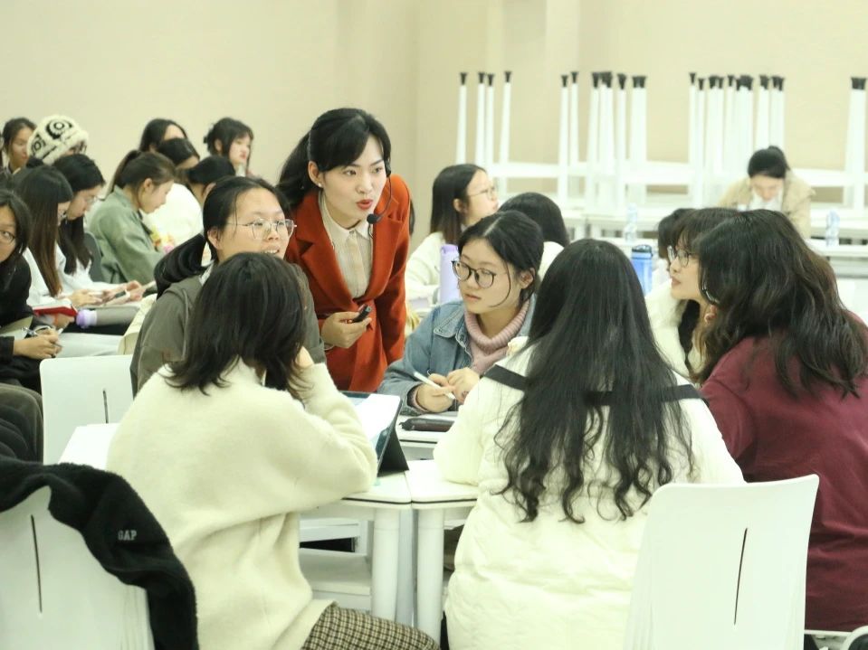 本次校友讲堂以实习生和校友名师同课异构、真实示范课堂展示、课堂点评等形式开展。我院2021级学生张萍、林子乔两位拟实习教师分别进行同一主题教学内容开展片段教学展示。两位拟实习教师以端正的教姿教态、流畅的教学语言、逻辑鲜明的授课内容充分展现了我院师范生扎实的教育教学基本功。