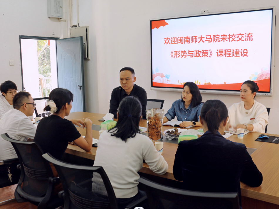 11月23日下午,我院副院长林海燕、《形势与政策》教研室主任江晓辉及教研室部分教师与漳州职业技术学院永利23411集团院长张锐鸿及相关课程负责人,围绕《形势与政策》课程建设与教学改革开展交流研讨。