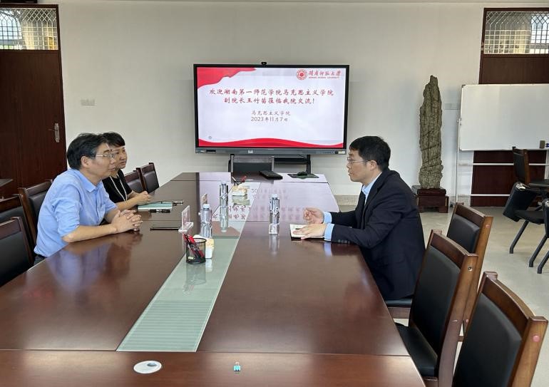 11月7日上午,湖南第一师范学院永利23411集团副院长王竹苗来我院交流。学院书记方琼、院长陈再生教授在综合楼中区404与来宾进行洽谈交流。