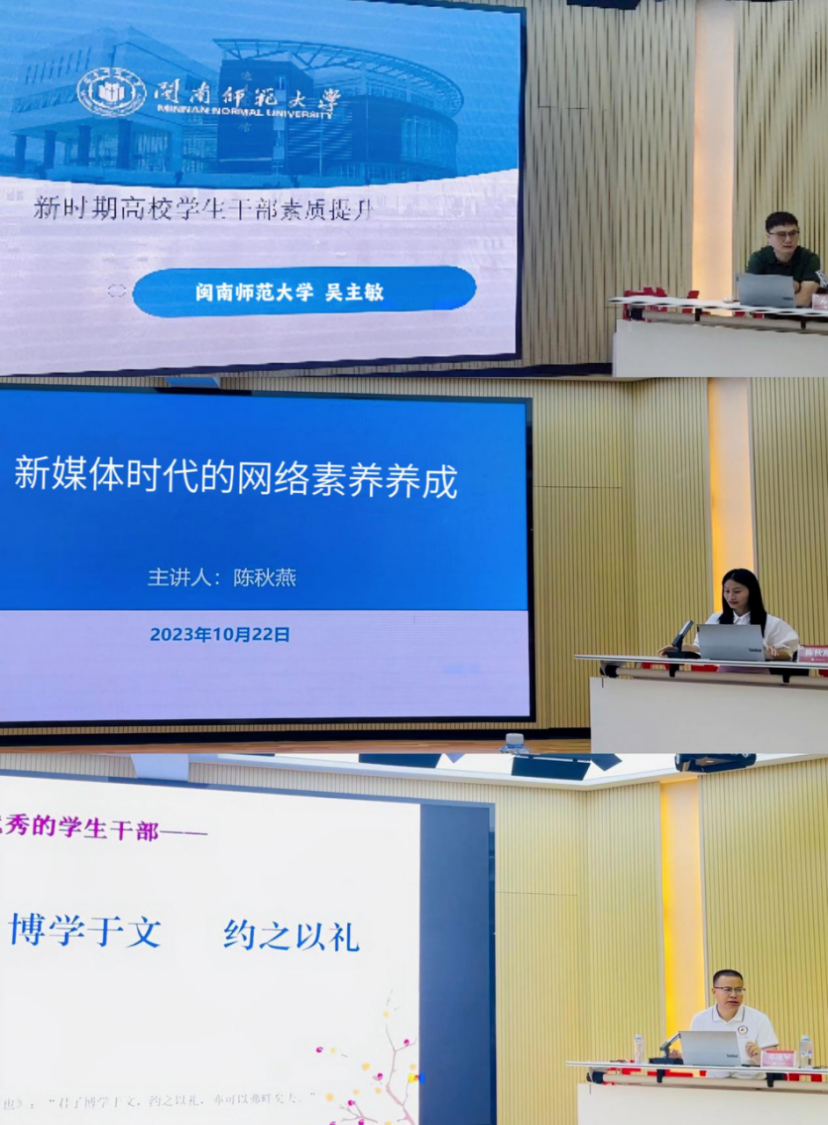 10月22日下午,我院党委副书记邓战军、校学生工作部管理科科长吴主敏、校党委宣传部宣传科科长陈秋燕为我院第十三期团校培训暨青干班培训班学员授课。(通讯员 吴清榕)