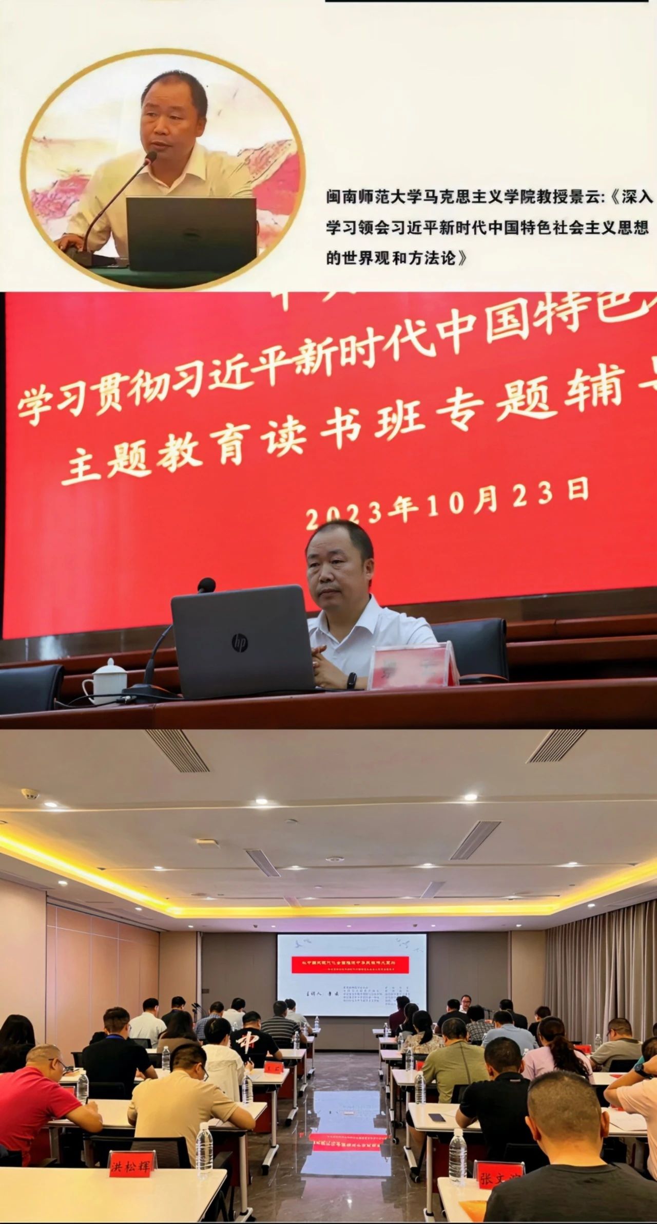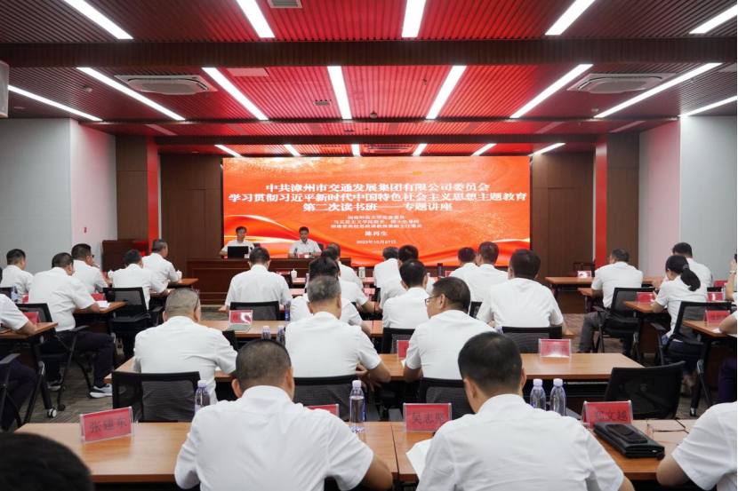 10月27日下午,我院院长陈再生到漳州市交通发展集团有限公司开展学习贯彻习近平新时代中国特色社会主义思想主题教育第二次读书班专题讲座。(通讯员 段国庆)