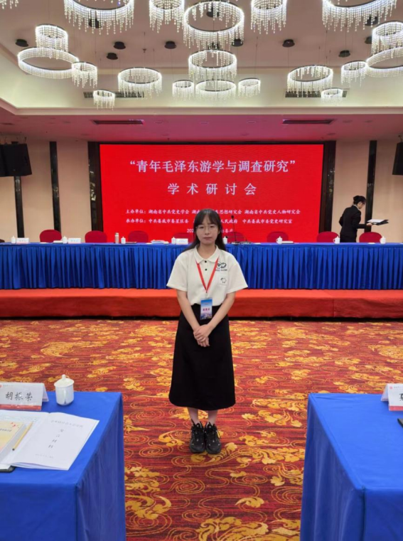 10月18日,“青年毛泽东游学与调查研究”学术研讨会在湖南娄底举办,我院2022级思想政治教育专业硕士研究生刘心怡受邀参会,并在会上作为研究生代表发言。(通讯员 刘心怡)