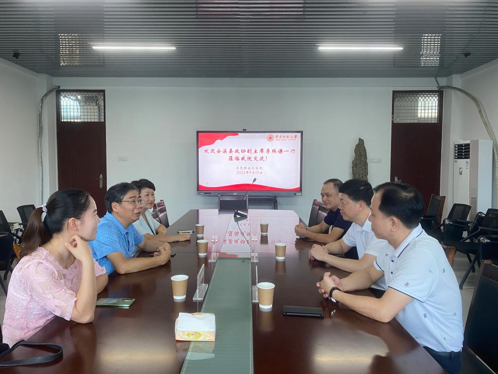 9月15日下午,安溪县政协副主席李瑞谦、安溪县教育局副局长张炎地、安溪县民政局白东明莅临我院交流。学院党委书记方琼、院长陈再生、思想政治教育专业教师郑育琛副教授在综合楼中区404与来宾洽谈交流。
